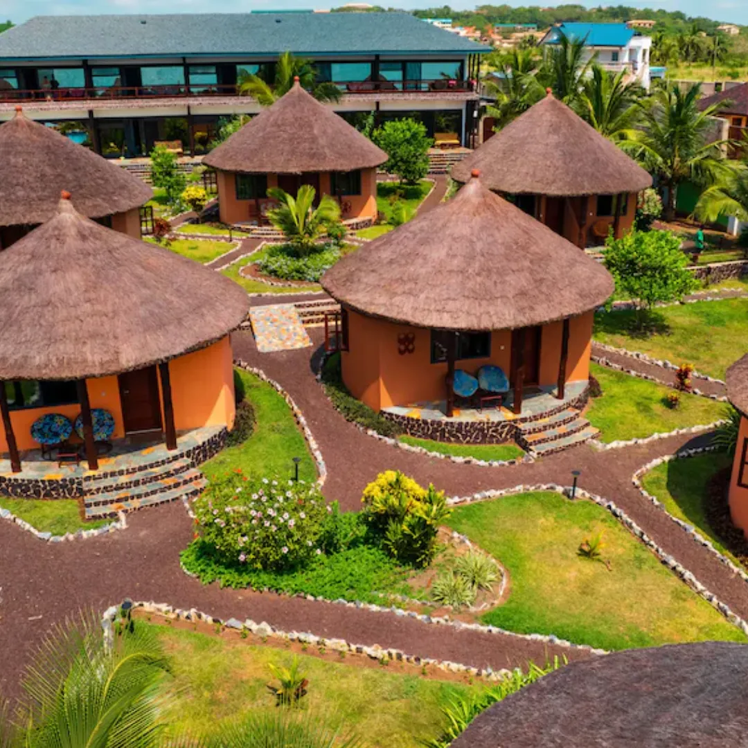 A stunning beachfront resort in Cape Coast/Elmina, Lemon Beach Resort combines laid-back coastal vibes with stylish comfort. With rooms overlooking the ocean or lush gardens, this property is perfect for rest, reflection, and immersive cultural experiences by the sea.